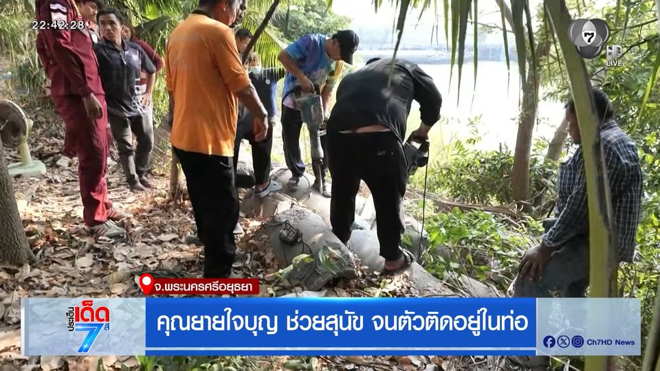 ประเด็นเด็ด 7 สี - ข่าวนี้ต้องบอกว่า ไม่รู้จะตกใจเรื่องไหนก่อนดี เกิดเหตุสุนัขติดอยู่ในท่อปูน โชคดีที่ยายอายุ 81 ปี ได้ยินเสียงก็เลยมุดท่อไปช่วย แต่กลายเป็นว่าคุณยายติดอยู่ในท่อไปด้วย กู้ภัยพยายามช่วยคุณยายอย่างทุลักทุเล