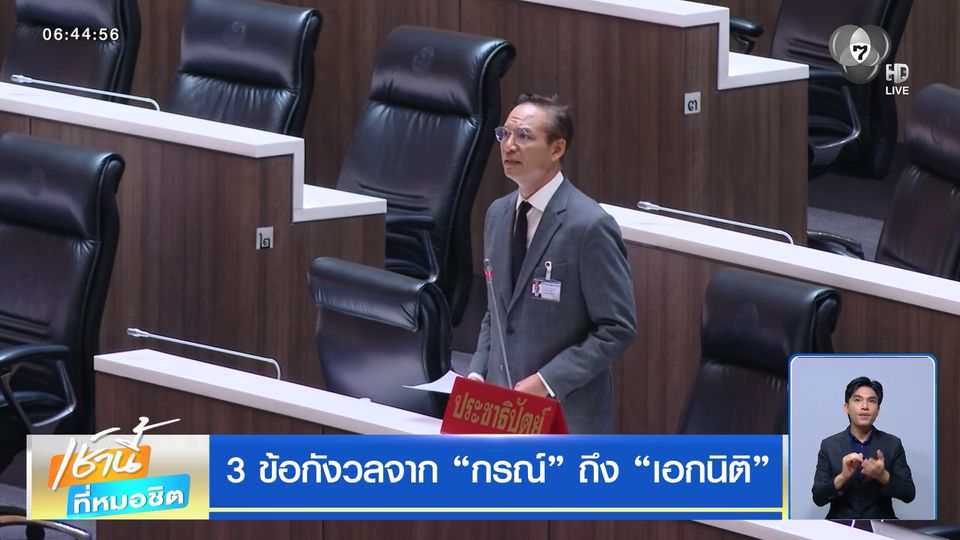 เช้านี้ที่หมอชิต - ประชุมสภาฯ กระทู้สดเมื่อวาน (23 เม.ย.) เป็นคิวของ นายกรณ์ จาติกวณิช สส.บัญชีรายชื่อ และรองหัวหน้าพรรคประชาธิปัตย์ ถาม "รองนายกฯ เอกนิติ" เกี่ยวกับเรื่องเศรษฐกิจ และเรื่องอื่น ๆ 3 ประเด็นสำคัญ