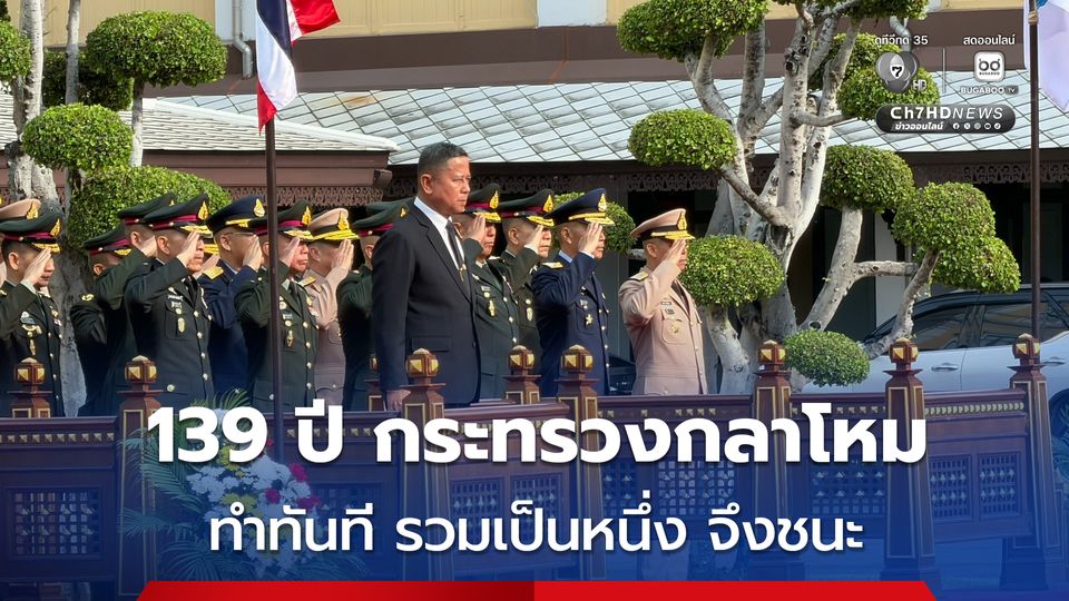เช้าวันนี้ (24 เม.ย.69) พลโท อดุลย์ บุญธรรมเจริญ รัฐมนตรีว่าการกระทรวงกลาโหม เข้าสักการะสิ่งศักดิ์สิทธิ์ประจำกระทรวงกลาโหม และ ศาลหลักเมือง เพื่อความเป็นสิริมงคล ก่อนร่วมพิธีตรวจแถวกองทหารเกียรติยศผสม 3 เหล่าทัพ ในโอกาสเข้ารับตำแหน่งเป็นทางการ และ ได้เป็นประธานในพิธีสงฆ์เนื่องในวันคล้ายวันสถาปนากระทรวงกลาโหม ครบ 139 ปี