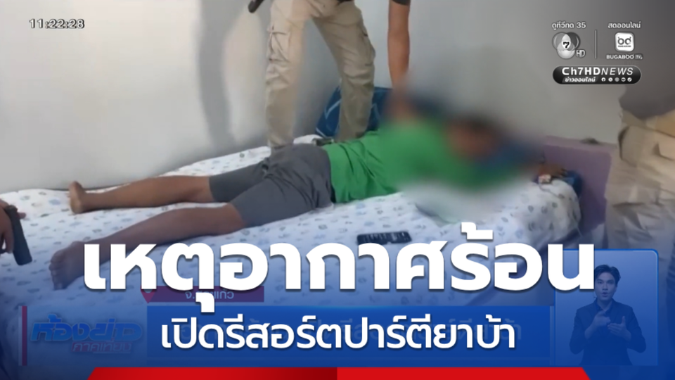 ห้องข่าวภาคเที่ยง - ช่วงนี้อากาศร้อน ฝ่ายปกครองจังหวัดสระแก้ว บุกทลายเครือข่ายยาเสพติดเปิดรีสอร์ต ทั้งขาย-ปาตียา ครบวงจรบริการถึงใจ