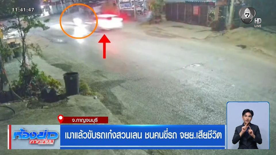 ห้องข่าวภาคเที่ยง - อุบัติเหตุรถเก๋ง เมาแล้วขับรถซิ่งข้ามเลน ไปชนคนขี่รถจักรยานยนต์ เสียชีวิต