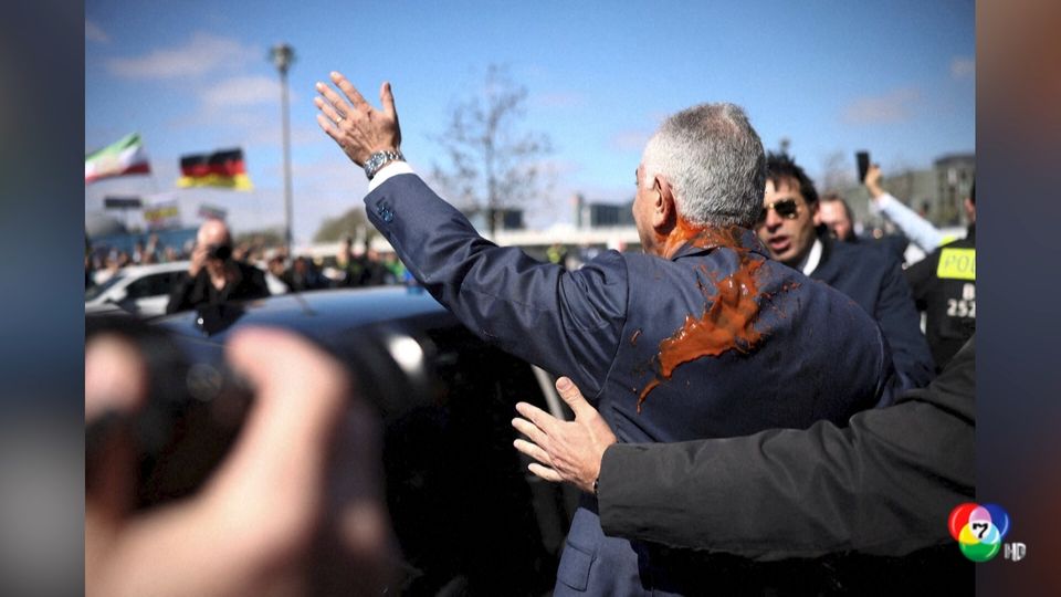 วันนี้ (24 เม.ย.) มีการเปิดเผยภาพเหตุการณ์ ขณะที่ เรซา ปาห์ลาวี ถูกผู้ประท้วงคนหนึ่งสาดซอสมะเขือเทศใส่จนเปื้อนบริเวณลำคอและเสื้อผ้า แต่เจ้าตัวไม่ได้มีท่าทีตกใจและยังคงโบกมือทักทายกลุ่มผู้สนับสนุนต่อไปตามปกติ ขณะที่ตำรวจจับกุมตัวชายผู้ก่อเหตุได้ในทันที