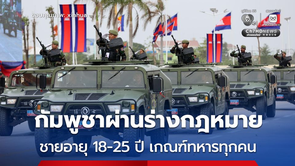 รัฐบาลกัมพูชาอนุมัติร่างกฎหมาย “เกณฑ์ทหาร” ให้ชายกัมพูชา อายุ 18-25 ปี ต้องเข้ารับการเกณฑ์ทหารทุกคน ส่วนผู้หญิงกัมพูชาจะใช้หลักการ "สมัครใจ"