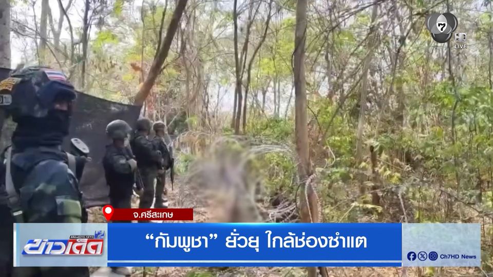ข่าวเด็ด 7 สี - ทหารไทยเจอพฤติกรรมยั่วยุจากทหารกัมพูชา ใกล้ช่องซำแต จังหวัดศรีสะเกษ ที่เข้าตั้งฐานประชิดเขตแดน สร้างบรรยากาศความตึงเครียดในพื้นที่อีกครั้ง