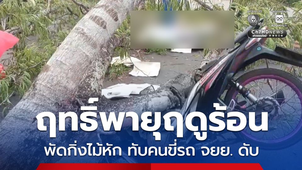 สลด เลิกงานกลับไม่ถึงบ้าน เกิดพายุฤดูร้อน ลมกระโชกแรงพัดกิ่งไม้ใหญ่หักลงขวางถนน ทับชายวัย 46 ปี ขี่รถ จยย. กลับบ้าน หลังเลิกงาน เสียชีวิตคาที่