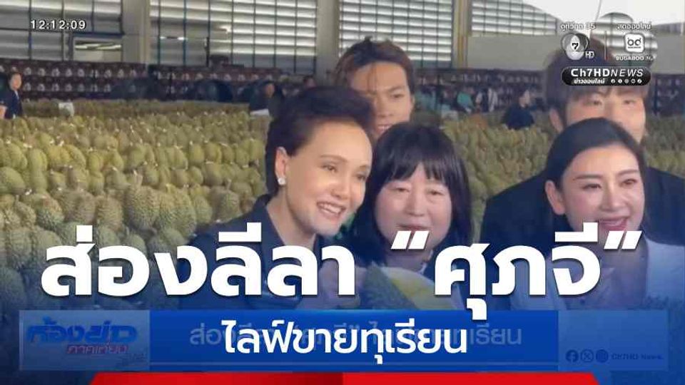 คุณศุภจี สุธรรมพันธุ์ รองนายกรัฐมนตรีและรัฐมนตรีว่าการกระทรวงพาณิชย์ ยังคงเอกลักษณ์อ่อนหวาน พูดจาไพเราะ ไลฟ์ขายทุเรียนเจาะตลาดจีน ผ่านแพลตฟอร์ม ซื่อผิ่นฮ่าว ซึ่งมีผู้ติดตามหลายล้านคน ซึ่งเมื่อวานนี้จะได้เห็นกระบวนการคัดคุณภาพอย่างเข้มข้น ตั้งแต่การตรวจเปอร์เซ็นต์แป้งปกติ ต้องไม่ต่ำกว่า 32 % และที่นี่ตั้งเกณฑ์สูงถึง 35 % รวมถึงการตรวจสารตกค้างโดยห้องปฏิบัติการที่ได้มาตรฐาน ทั้งจากสำนักวิจัยและพัฒนาการเกษตร และเซนทรัล
