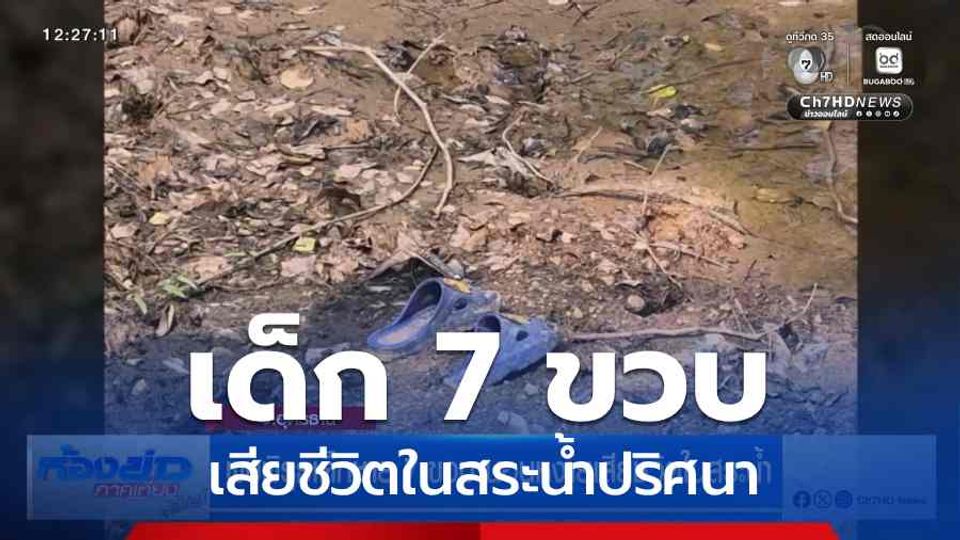 ห้องข่าวภาคเที่ยง สุดสัปดาห์ - ส่วนเรื่องนี้สุดสลดจริง ๆ เด็กชาย อายุ 7 ขวบ หายออกจากบ้าน ก่อนพบเสียชีวิตอยู่ในสระน้ำกลางไร่อ้อย ชาวบ้านสงสัยว่า อาจถูกฆาตกรรม