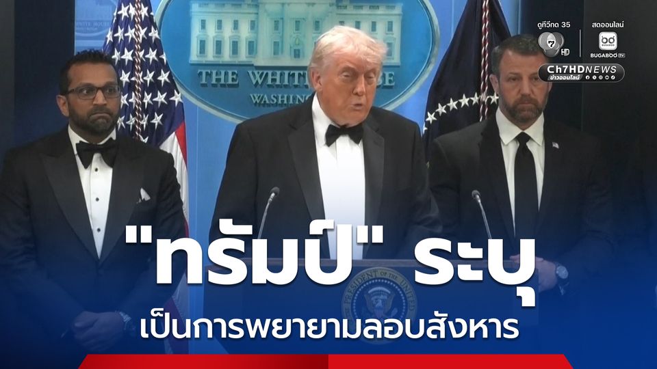 “โดนัลด์ ทรัมป์” แถลงหลังมีเสียงปืนดังขึ้นในงานเลี้ยงผู้สื่อข่าวทำเนียบขาว ระบุเป็นความพยายามลอบสังหารของ "ผู้ป่วยจิต" โดยชายคนหนึ่งวิ่งผ่านจุดตรวจความปลอดภัยพร้อมอาวุธหลายชนิด ก่อนถูกเจ้าหน้าที่ควบคุมตัวไว้ได้ เผยรู้สึกเป็นเกียรติที่โดนพยายามลอยสังหาร เพราะคนที่มักจะตกเป็นเป้าเป็นผู้ที่สร้าง "ผลกระทบมากที่สุด"