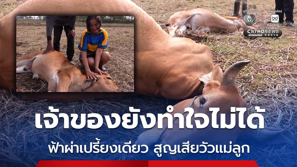 เจ้าของร่ำไห้ ทำใจไม่ได้ ฟ้าผ่าวัว แม่ลูกตาย 2 ตัว เผยรักเหมือนสมาชิกในครอบครัว กู้เงิน 2.5 หมื่นบาท ซื้อมาเลี้ยงเป็นอาชีพเสริม หลังลาออกจากแม่บ้านที่เมืองกรุงกลับมาอยู่บ้านเกิด