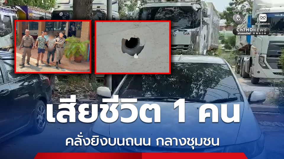 คลั่งยิงปืนบนถนนกลางชุมชน ชาวบ้านขับรถผ่านทาง ต้องมาสังเวยชีวิต คุณแม่วัย 44 ปี ถูกยิงใส่รถ กระสุนเข้าราวนม เสียชีวิต เคราะห์ดีที่ลูกทั้ง 2 คน ปลอดภัย รถยนต์เสียหายหลายคัน ค้นตัวผู้ก่อเหตุพบยาบ้า 3 เม็ด