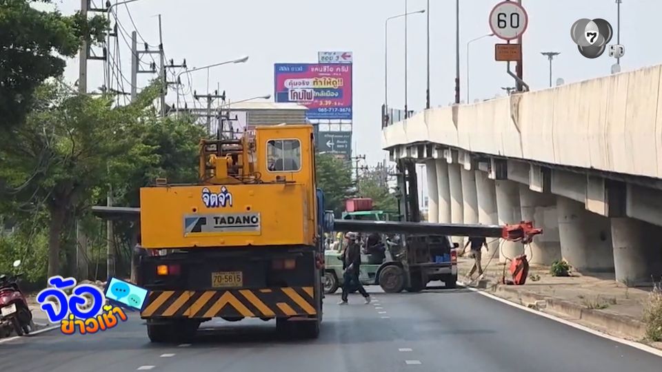 จ้อข่าวเช้า - เครนล้มขวางถนน ทำรถติด จ.สมุทรสาคร