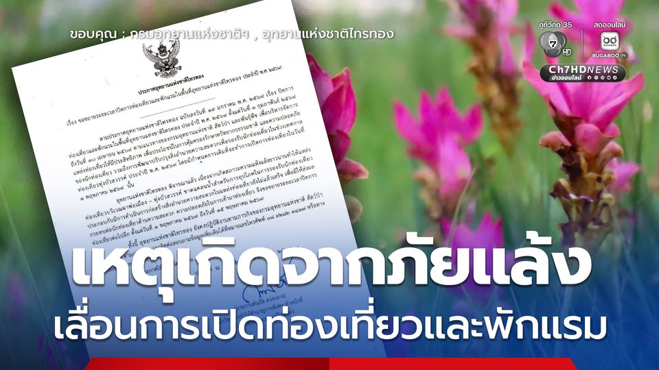 วันนี้ (27 เมษายน 2569) นายกานต์นภัส ดวงกลาง หัวหน้าอุทยานแห่งชาติไทรทอง เปิดเผยว่า ตามประกาศอุทยานแห่งชาติไทรทอง ฉบับลงวันที่ 19 มกราคม พ.ศ. 2569 เรื่อง ปิดการท่องเที่ยวและพักแรมในพื้นที่อุทยานแห่งชาติไทรทอง ประจำปี พ.ศ. 2569 ตั้งแต่วันที่ 1 กุมภาพันธ์ ถึงวันที่ 30 เมษายน 2569 เพื่อเป็นการพักฟื้นทรัพยากรธรรมชาติและดำเนินการปรับปรุงสิ่งอำนวยความสะดวกเพื่อเตรียมความพร้อมรองรับนักท่องเที่ยวในช่วงเทศกาลท่องเที่ยว "ทุ่งบัวสวรรค์" (ดอกกระเจียว) ประจำปี พ.ศ. 2569 โดยมีกำหนดการเดิมที่จะเปิดให้บริการในวันที่ 1 พฤษภาคม 2569 นั้น