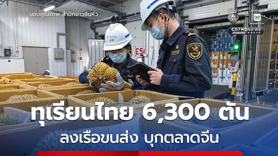(27 เม.ย.69) สำนักข่าวซินหัว รายงานว่า เรือขนส่งทุเรียนด่วน 3 ลำ ซึ่งบรรทุกตู้คอนเทนเนอร์รวม 356 ตู้ บรรจุทุเรียนสดกว่า 6,300 ตัน ทยอยเทียบท่าเรือหนานซาในเมืองกว่างโจว มณฑลกว่างตง (กวางตุ้ง) ทางตอนใต้ของจีน ระหว่างช่วงเช้าวันที่ 25 เม.ย.- 26 เม.ย. 69