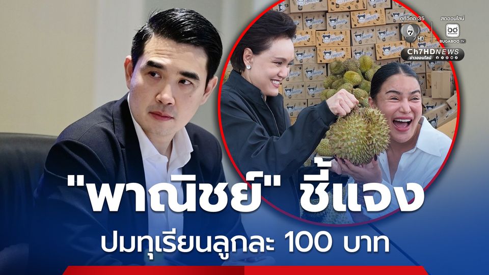 "พาณิชย์" ชี้แจงกรณีอินฟลูชื่อดังจำหน่ายทุเรียนลูกละ 100 บาท เป็นการจัดโพรโมชันของอินฟลูฯ เพื่อเร่งกระตุ้นการบริโภคทุเรียนเกรดรอง ไซต์เล็ก ในประเทศ ไม่ใช่เกรดส่งออก เผยผลลงพื้นที่สำรวจ พบราคาเฉลี่ย กิโลกรัมละ140-150 บาท