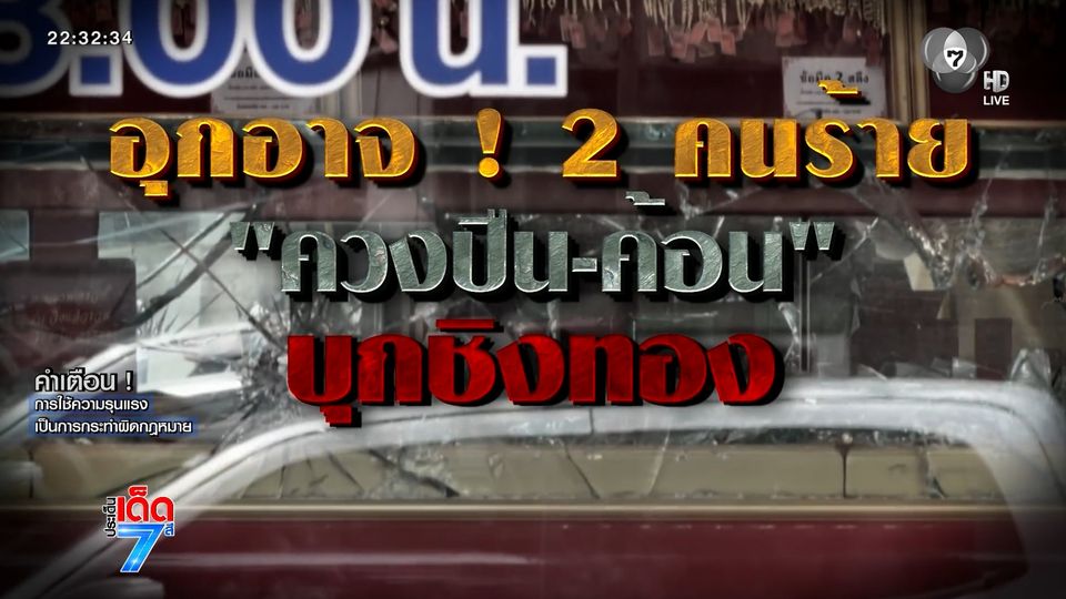 ประเด็นเด็ด 7 สี - ต่อกันที่เหตุอุกอาจ 2 คนร้ายสวมไอ้โม่ง ใช้ปืนจี้และใช้ค้อนทุบตู้ในร้านทอง จังหวัดนครราชสีมา ฉกแหวนไปกว่า 30 วง ล่าสุดตำรวจทำงานไวตามรวบทั้ง 2 คนได้แล้ว ทั้ง 2 รับว่าทำไปเพราะอะไร ไปติดตามกับคุณไพศาล รัตนบรรเทิง ในเจาะเกาะติด