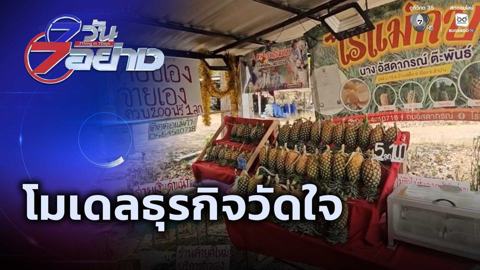 สนามข่าว 7 สี - พาคุณผู้ชมไปดูโมเดลธุรกิจวัดใจ ร้านขายสับปะรด ในจังหวัดลำปาง ใจป้ำ เปิด 24 ชั่วโมง แบบไร้เงาแม่ค้า ติดตามใน "7 วัน 7 อย่าง"