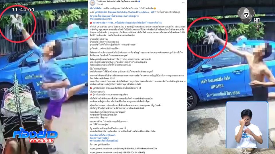 ห้องข่าวภาคเที่ยง - สะเทือนใจทาสแมว ! ไม่รักก็โยน หนุ่มคนหนึ่งมีพฤติกรรมทารุณกรรมสัตว์ จับลูกแล้วโยนข้ามกำแพงเพราะขวางหน้าบ้าน