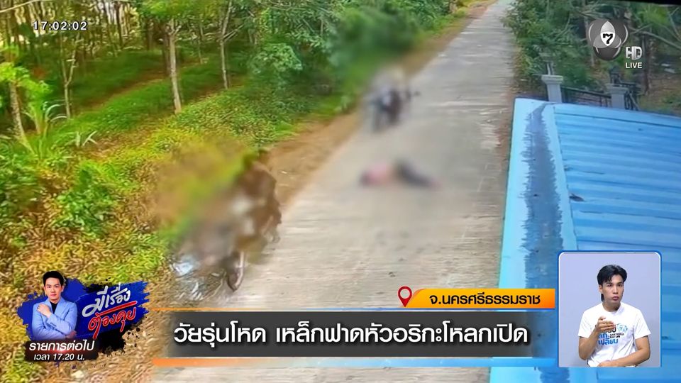 ข่าวเย็นประเด็นร้อน - ตำรวจนบพิตำ เร่งล่าตัววัยรุ่นชาย ขี่รถมอเตอร์ไซค์ สวนคู่อริ ใช้ท่อนเหล็กแป๊บฟาดจนกะโหลกเปิด