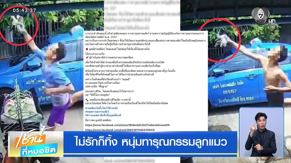 เช้านี้ที่หมอชิต - สะเทือนใจทาสแมว ไม่รักก็โยน หนุ่มคนหนึ่งมีพฤติกรรมทารุณกรรมสัตว์ จับลูกแมวโยนข้ามกำแพง เพราะขวางหน้าบ้าน