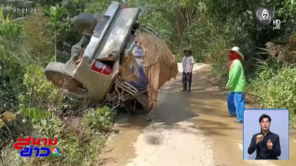 สนามข่าว 7 สี - ชาวสวนทุเรียน จังหวัดชุมพร ขับรถกระบะบรรทุกน้ำไปรดต้นทุเรียน หลังจากฝนทิ้งช่วงนาน 2 เดือน ปรากฏว่าระหว่างทางประสบอุบัติเหตุเสียหลัก