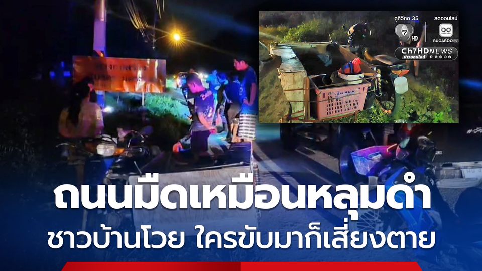 ชาวบ้านโวยถนนมืดไร้ไฟเป็นเหตุ รถ จยย.พ่วงข้างน้ำมันหมด คนจูงข้ามถนน หนุ่มขี่รถ จยย. มองไม่เห็น พุ่งชนเจ็บหนัก วอนหน่วยงานที่เกี่ยวข้องแก้ไข ติดไฟส่องสว่าง ย้ำ "ถนนมืดเหมือนหลุมดำ ใครขับมาก็เสี่ยงตาย"