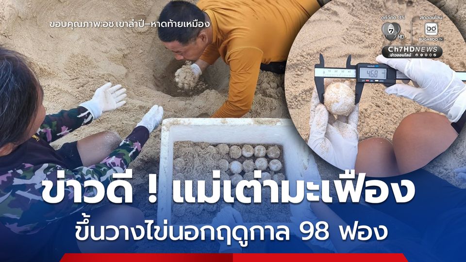 อุทยานแห่งชาติเขาลำปี–หาดท้ายเหมือง พบร่องรอย “แม่เต่ามะเฟือง” ขึ้นวางไข่ทั้งหมด 98 ฟอง (สมบูรณ์ 85 ฟอง/ไข่ลม 13 ฟอง) บริเวณชายหาดใกล้หน่วยพิทักษ์อุทยานที่ ลป.3 (ปาง)