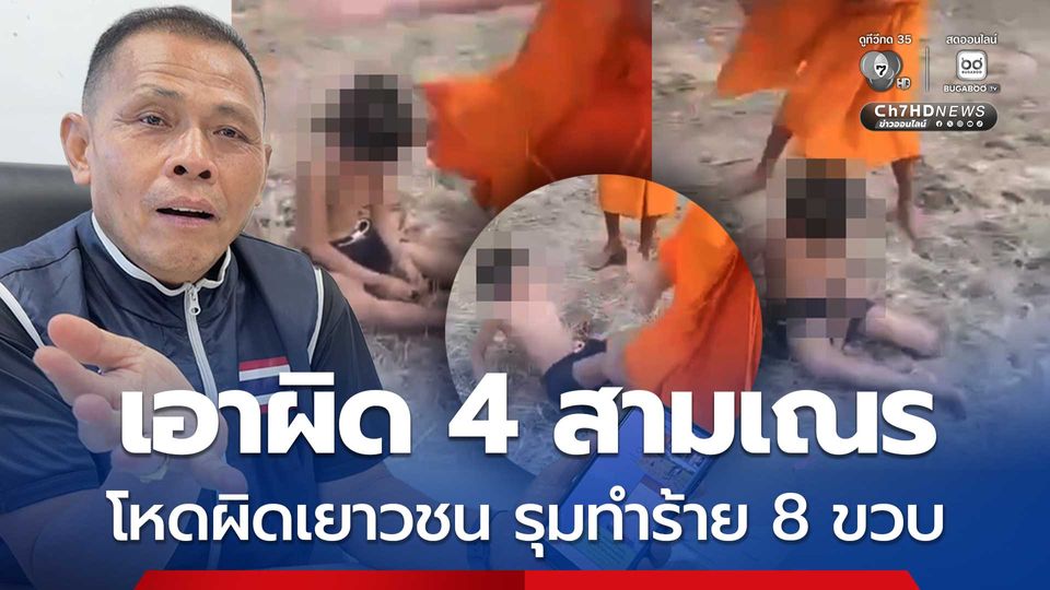 ทำผ้าเหลืองฉาว คลิปว่อนโซเชียลฯ 4 สามเณร อายุ 12-16 ปี รุมทำร้ายเด็กชาย 8 ขวบ จนน่วม โดนให้สึก เตรียมถูกดำเนินคดี